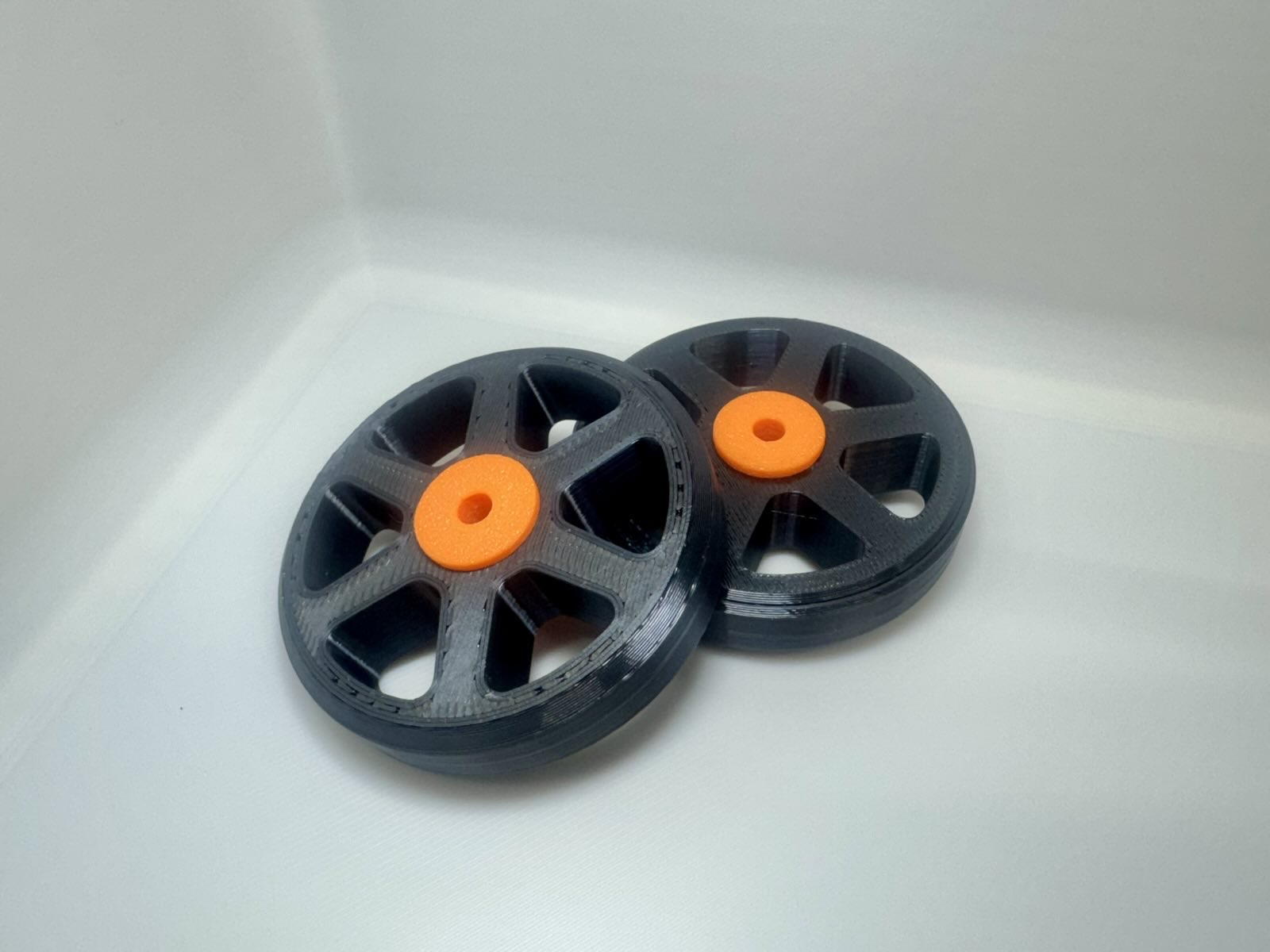 Additionally, each wheel is equipped with precision bushings that reinforce structural rigidity where it’s needed most. These bushings are made from glass-reinforced Acrylonitrile Butadiene Styrene, a material renowned for its exceptional impact strength and high-temperature resistance, making it perfect for direct contact with metal axles.